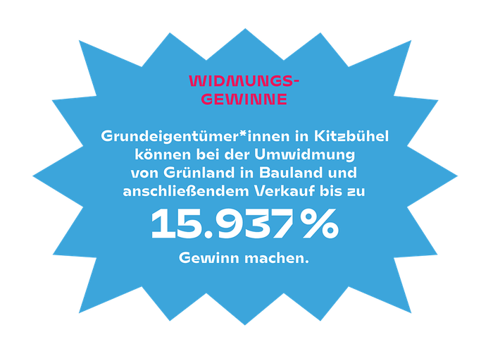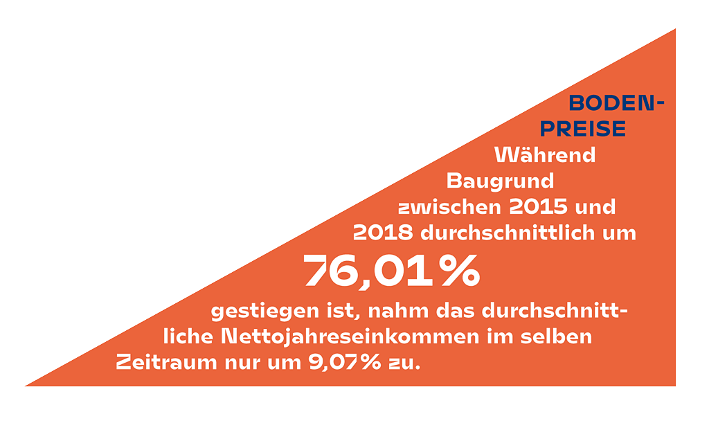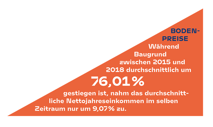 Viele profitieren, doch dieser „Profit“ geht einher mit Baulandhortung, Zersiedelung, mit steigenden Bodenpreisen und letztlich steigenden Wohnkosten. Dieser „Profit“ geht einher mit dem Verlust an fruchtbaren Böden durch die fortschreitende Versiegelung und bedroht unsere Ernährungssicherheit. Er zwingt die Landwirtschaft in immer intensivere Anbaumethoden – unterstützt durch chemische Düngung – und übersieht, dass sich durch die Klimaveränderung ganze Landstriche bald nicht mehr als Anbauflächen eignen werden. Dieser „Profit“ macht uns abhängig von internationalen Vertriebssystemen, deren Verletzlichkeit gerade wieder sehr offensichtlich wird. Dieser „Profit“ geht einher mit einer Beschleunigung des Klimawandels. Versiegeltem Boden wird die Fähigkeit genommen, Wasser aufzunehmen und als CO2-Speicher zu fungieren. Dieser „Profit“ geht einher mit dem Verlust an öffentlichen Räumen, an Naturräumen, an konsumfreien Zonen und drängt in den Städten eine wachsende Zahl an Menschen auf immer kleinere Flächen. Soziale Konflikte werden geschürt statt entschärft.