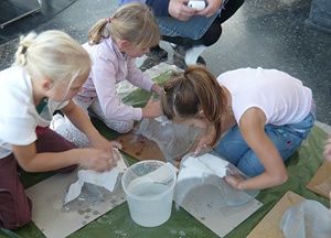 Zellen und Knochen, Stämme und Halme, Spinnennetze und Vogelnester, Wasserwirbel und Seifenblasen sind die Ideengeber für unsere Raumexperimente. Aus Gips, Draht, Holz, Hanf, Textilien und Folien konstruieren wir kühne Dächer und Bubblehäuser, spannen Seilnetze über hügelige Landschaften und schrauben uns, einer Spirale gleich, in luftige Höhen. Vom chilligen Umhüllen bis zum konstruktiven Abhängen – für jeden ist in unserer Modellbauwerkstatt etwas dabei.