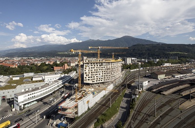 Führung mit Architekten- und Bauherrenvertreter durch das im Herbst fertig gestellte Ensemble, das auch als neues Stadtteilzentrum für die Reichenau fungiert.