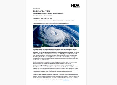 Heatwaves, storms and floods are making the effects of climate change more tangible all over the world. In the spring of 2023 and 2024, the HDA invited young European architects to address the challenges posed by these extreme weather conditions. The aim was to come up with innovative ideas to make cities, regions and buildings more resilient to heavy rain, flooding and extreme heat. The exhibition “Bioclimatic Actions” showcases the results of two workshops with young European architects, which were part of the HDA research laboratory funded by the EU Creative Programme.