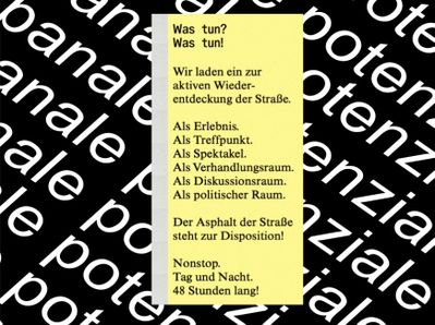 For 48 hours non-stop in autumn 2024, banale potenziale was dedicated to questions of so-called public space, especially the street. Alternative uses were trialled, new perspectives opened up and hidden potential made visible. "banale potenziale - Laboratory for Researching the Street" at HDA - Haus der Architektur builds on the debates of banale potenziale and takes them further. As an exhibition, meeting place and discourse space, it sheds light on the history of banale, presents the results of the 48 hours and also shows new contributions.