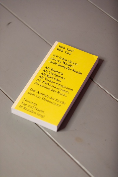 BuchpräsentationZur banale potenziale erscheint eine Publikation, die zum einen eine Retrospektive der 48-stündigen Auseinandersetzung mit dem öffentlichen Raum bietet und zum anderen zentrale Themen der Ausstellungen und Interventionen aufgreift und weiterführt. Sie versammelt Texte sowie fotografische und künstlerische Arbeiten, die sich aus unterschiedlichen Blickwinkeln den behandelten Fragestellungen annähern. Entstanden ist ein Reader, der als Orientierungshilfe, als Handlungsgrundlage und als Ausgangspunkt für interdisziplinäre Vernetzungen konzipiert ist. Die Publikation wird im Rahmen einer Book Launch Party mit anschließendem Fest präsentiert – eingebettet in die Ausstellung banale potenziale – Labor zur Erforschung der Straße im HDA.