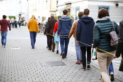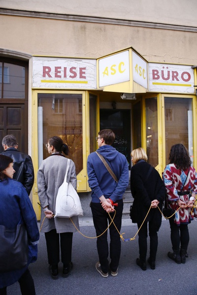 PerformanceWir brechen auf zu einer Expedition, wandern auf Wegen durch den urbanen Raum – ein Baustellenband dient uns als Rettungsseil. Während wir in Siedlungsgebieten navigieren, begegnen wir Orten von Transformation, dem Dialog von Schaffen und Zerstören. Wir lagern an unbeachteten Ecken und hören den Stimmen der BewohnerInnen zu und bewundern die verschlungenen Netzwerke dieses lebenden Organismus.