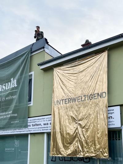 PerformanceDas Haus der Architektur lädt im Rahmen der Ausstellung Verhüllung und Verheißung herzlich zu einem Richtfest mit dem Künstler Sven Borger ein. Bei seiner Performance enthüllt Sven Borger ein unterweltigendes Baustellenplakat an einer Baustelle im Grazer Stadtzentrum (Lendkai 95).