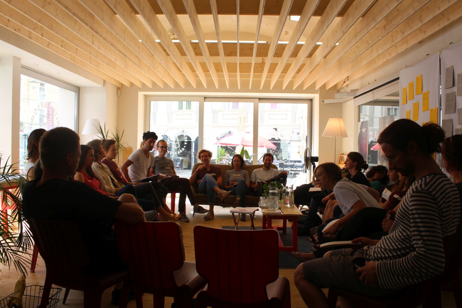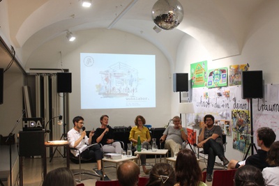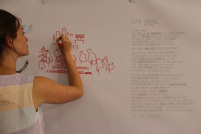 WorkshopIn einem einwöchigen Workshop bieten wir interessierten GrazerInnen jeder Altersgruppe eine Plattform, sich für das Thema Wohnen zu engagieren und Ideen auszutauschen, denn: Wohnen ist eine Aufgabe für alle. Zusammen mit ExpertInnen diskutieren wir relevante Teilaspekte gemeinschaftlicher Wohnformen und erarbeiten unsere gemeinsame Wohnvision.