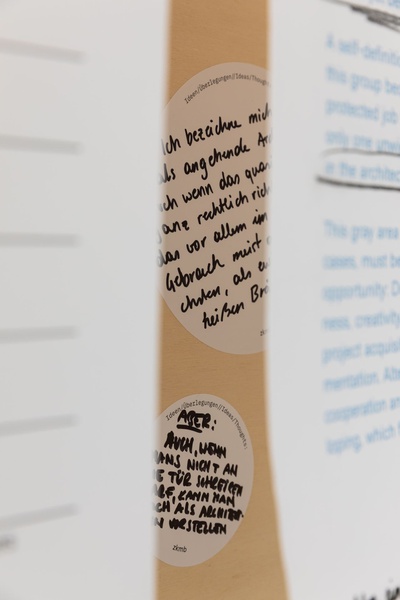 AusstellungDie Ausstellung „Zwischen Kostenschätzung, Muttermilch und Bauwende“ versammelt die drängendsten Fragen, Positionen und Forderungen junger Architekt:innen in Österreich. Die Herausforderungen sind groß: die Bauwende aktiv mitgestalten, gerechtere Arbeitsstrukturen schaffen und die eigenen Handlungsspielräume durch veränderte Rahmenbedingungen vergrößern. Gezeigt wird ein kollektiv kuratiertes Mapping, das gemeinsam mit 60 Architekt:innen erarbeitet wurde und den Auftakt zu einer offenen Diskussion bildet. Die Installation lädt zum Austausch ein, stellt Fragen und soll durch Kommentare der Besucher:innen weiter wachsen.