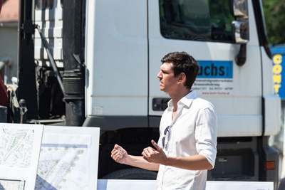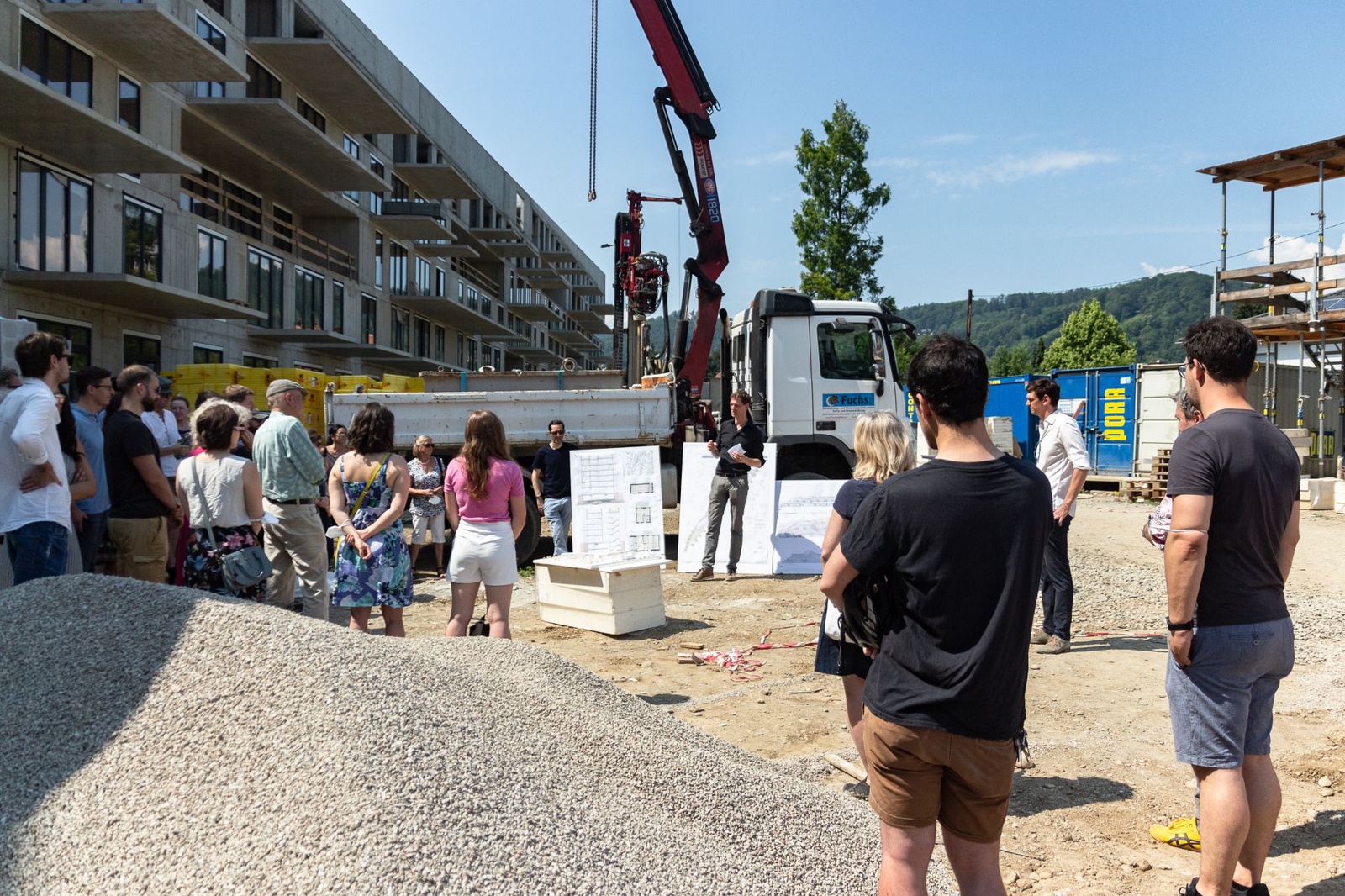 Das Gebäude gliedert sich in vier Bauabschnitte, die in unterschiedlichen Realisierungsstadien – vom Rohbau bis zur Fertigstellung – besichtigt werden konnten. Das Projekt umfasst 199 Wohnungen mit Balkonen und Loggien, Büro und Gewerbeflächen, einen Kindergarten, ein in die Gesamtanlage integriertes Einfamilienhaus, zwei Tiefgaragen und zwölf Wohnterrassen, die von allen BewohnerInnen des Hauses angeeignet werden können.