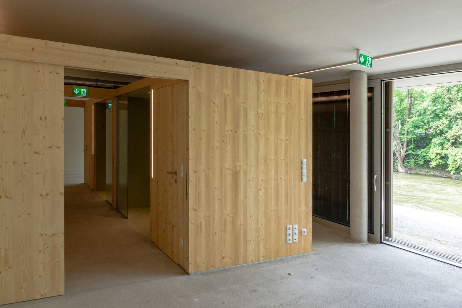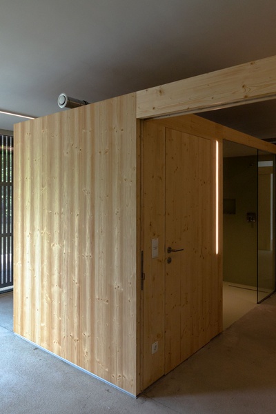 Der 100m² beheizte und sehr offen gestaltete Vereinsbereich mit innenliegender Funktionsbox sowie das 130m² große Bootslager können durch verschiebbare Holzfassadenelemente komplett geschlossen, aber auch flexibel geöffnet und mit dem Außenraum verschränkt werden.