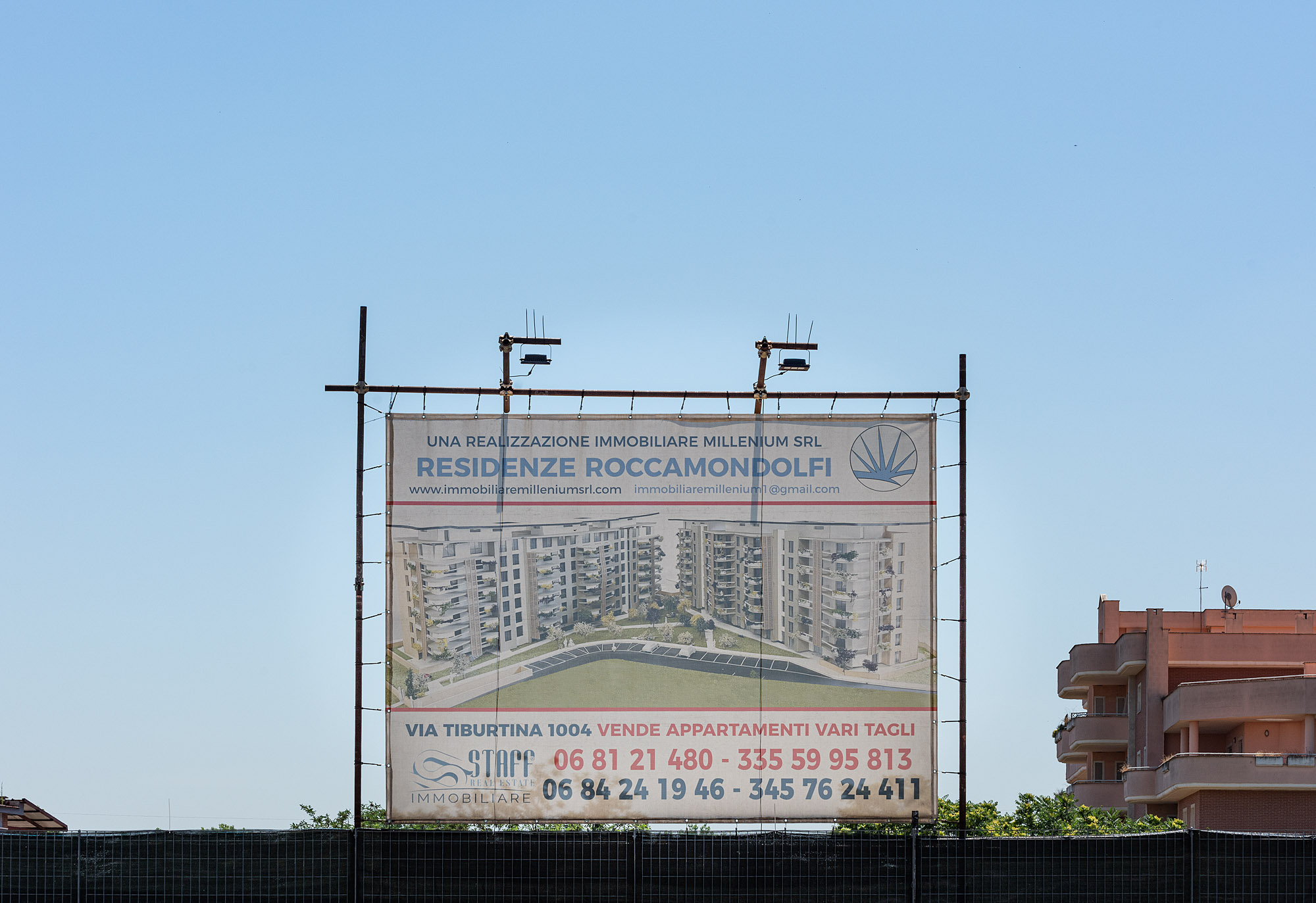 ERÖFFNUNG: 21.09.2022, 20 UHR || Die bildliche Darstellung von Bauten und städtischen Räumen gehört zu den wichtigsten Formen in der Kommunikation von zeitgenössischer Architektur. Im Stadtraum werden diese Visualisierungen oft zu Werbezwecken an Baugerüsten und Bauzäunen verwendet. Die Ausstellung "Verhüllung und Verheißung" geht dem Phänomen der Immobilienwerbung im öffentlichen Raum nach. Aufnahmen des Fotografen Hans Georg Esch von Plakaten aus verschiedenen Teilen der Welt werden Texten von Reinier de Graaf, AMO/OMA, Bildanalysen der Grafikdesignerin Rosa Nussbaum sowie einer Installation des Künstlers Sven Borger gegenübergestellt.
