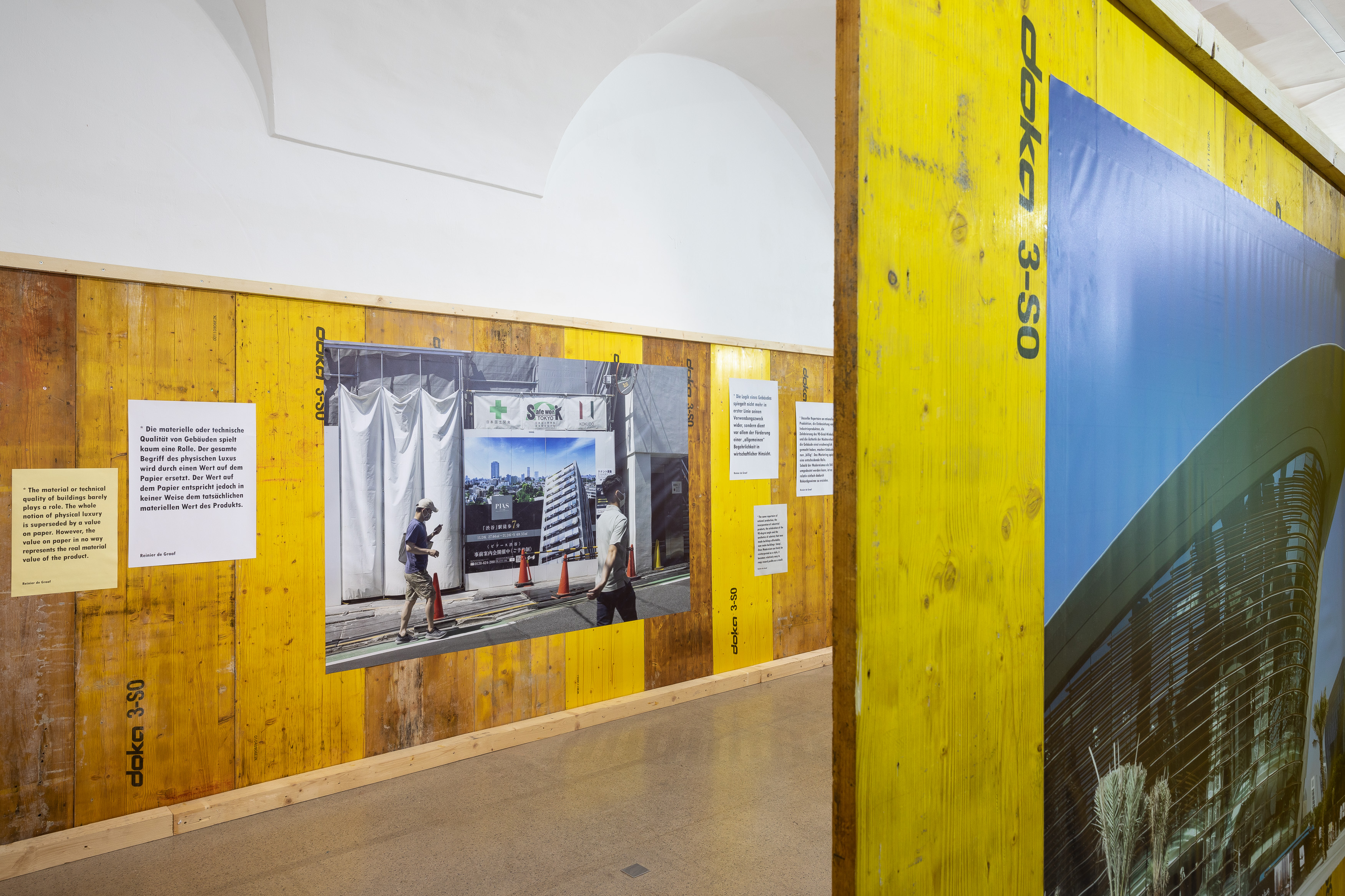 Kurztext Die bildliche Darstellung von Bauten und städtischen Räumen gehört zu den wichtigsten Formen in der Kommunikation von zeitgenössischer Architektur. Im Stadtraum werden diese Visualisierungen oft zu Werbezwecken an Baugerüsten und Bauzäunen verwendet. Die Ausstellung Verhüllung und Verheißung geht dem Phänomen der Immobilienwerbung im öffentlichen Raum nach. Aufnahmen des Fotografen Hans-Georg Esch von Plakaten aus verschiedenen Teilen der Welt werden Texten von Reinier de Graaf, AMO/OMA, Bildanalysen der Grafikdesignerin Rosa Nussbaum sowie einer Installation des Künstlers Sven Borger gegenübergestellt.