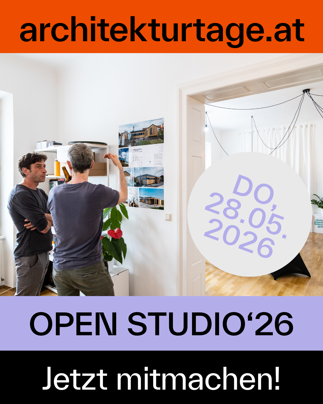 Im Rahmen der Architekturtage 2026 findet am Donnerstag, 28. Mai 2026, der österreichweite Programmpunkt Open Studios statt. Dabei haben Ziviltechniker*innen – insbesondere Architekt*innen und Ingenieur*innen – die Möglichkeit, ihre Büros für die interessierte Öffentlichkeit zu öffnen und Einblicke in ihre Arbeitsweisen, Projekte und Themenfelder zu geben. Das diesjährige Schwerpunktthema „Infrastruktur“ ist bewusst als verbindendes Thema zwischen Architektur und Ingenieurwesen angelegt – daher sind Zivilingenieur*innen ausdrücklich eingeladen, sich verstärkt zu beteiligen und ihre Perspektiven sichtbar zu machen.
