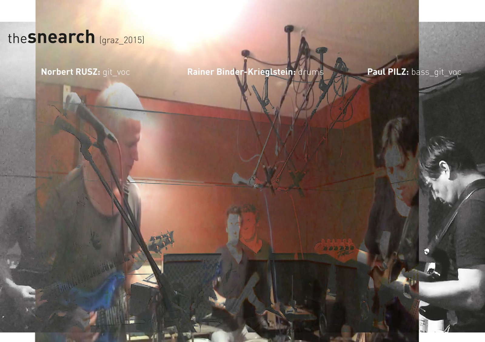 improvisation als herausforderung an das eigene tun:: der rückzug von der sprachlichkeit als kommunikationsform des offensichtlichen:: oder die individuelle interpretation erlebter ton.klang.hybride:: der spontane interaktive emotionale austausch – als hochenergetischer prozess in dem permanent entscheidungen über den verlauf der musikalischen handlungen getroffen werden:: die struktur der stücke ist frei vom kompositionsritual – alles ergibt sich und erfindet sich per momentum neu:: thesnearch::: urban modern music – gegossen in ein hochkonzentriertes trio-format.