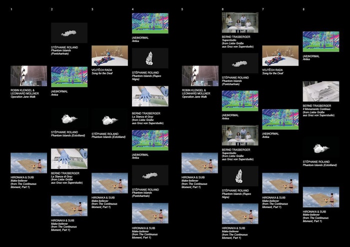 Kurzvorträge der beteiligten KünstlerInnen: (ab)Normal, Milan/Rotterdam Lion & Unicorn, Moskau Robin Klengel & Leonhard Müllner, Graz/Wien Stéphanie Roland, Brüssel Vojtech Rada, Prag Bernd Trasberger, Berlin Traumnovelle, Paris/Brüssel