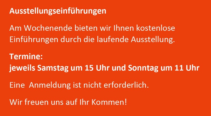 Kostenlose Einführungen in die Ausstellung: samstags, 15 Uhr & sonntags, 11 Uhr