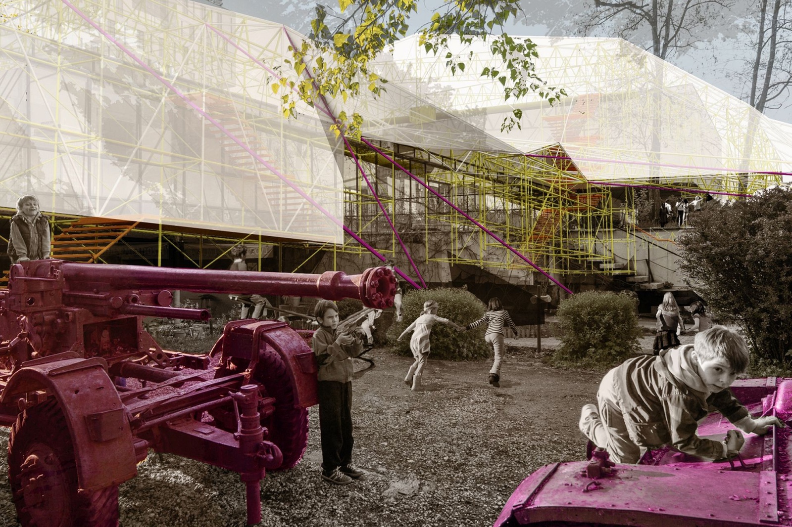 Was ist möglich, wenn ein Ausnahmezustand die Regel wird? Konflikte und Kriege schaffen eine völlig dystopische Atmosphäre mit Verwirrung, Desorientierung und Korruption. Gleichzeitig entsteht eine Chance, die Gesellschaft von Grund auf neu zu denken und ihre kulturellen Wahrzeichen neu zu erfinden. Mit einem Entwurf für das Historische Museum von Bosnien und Herzegowina schlägt Urban-Think Tank zusammen mit Baier Bischofberger Architects ein temporäres Konzept vor, dessen Umsetzung institutionelle und kulturelle Prozesse integrieren soll. Die Architektur soll mit ihrem sozialen und politischen Umfeld interagieren.