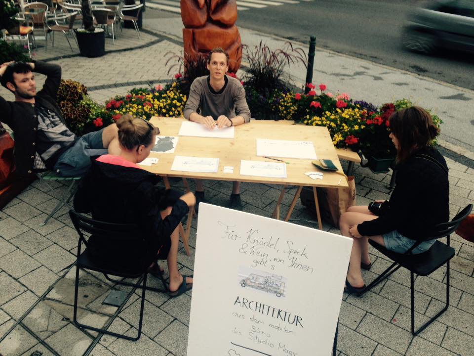 FilmvorführungDas Studio Magic hielt ihre Tour durch die Steiermark, bei der sie architektonische Entwürfe jedermann anboten und im Gegenzug eine Jause oder warme Speisen oder Getränke erhielten, auf Film fest. Nicht von einem professionellen Filmteam begleitet, sondern allein mit den zur Verfügung gestandenen Medien wurde gefilmt. Als Erinnerung und Dokumentation entsteht gerade ein Zusammenschnitt dieser Filmsequenzen um einen Einblick in die unterschiedlichen Gemeinden und deren Bewohner und vor Allem einen Einblick in den Austausch der Studio Magics und Interessierten zu zeigen. Diese Dokumentarfilm wird am 30. September im HDA präsentiert.