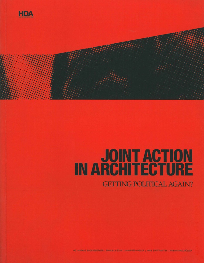 Architecture, when interpreted as the spatial expression of the existing power structure, has long been a political affair. All the more surprising then, that contemporary architects see their profession as largely apolitical. Architecture is reduced to a spatial art form – all too often, the result is introverted architecture that misses the bigger picture. Through “JOINT ACTION IN ARCHITECTURE – Getting political again?”, the current issue in the series HDA Dokumente zur Architektur, Haus der Architektur Graz lays out its position with regard to this political and moral crisis in architecture, arising as it has by anything but chance alongside the current economic crisis. Here a large number of guest contributors from the fields of architecture and architectural criticism, politics and finance, philosophy and ecology, along with dissidents, sketch out objectives that need to be pursued if architecture is again to become a relevant player in the shaping of our political and social framework.